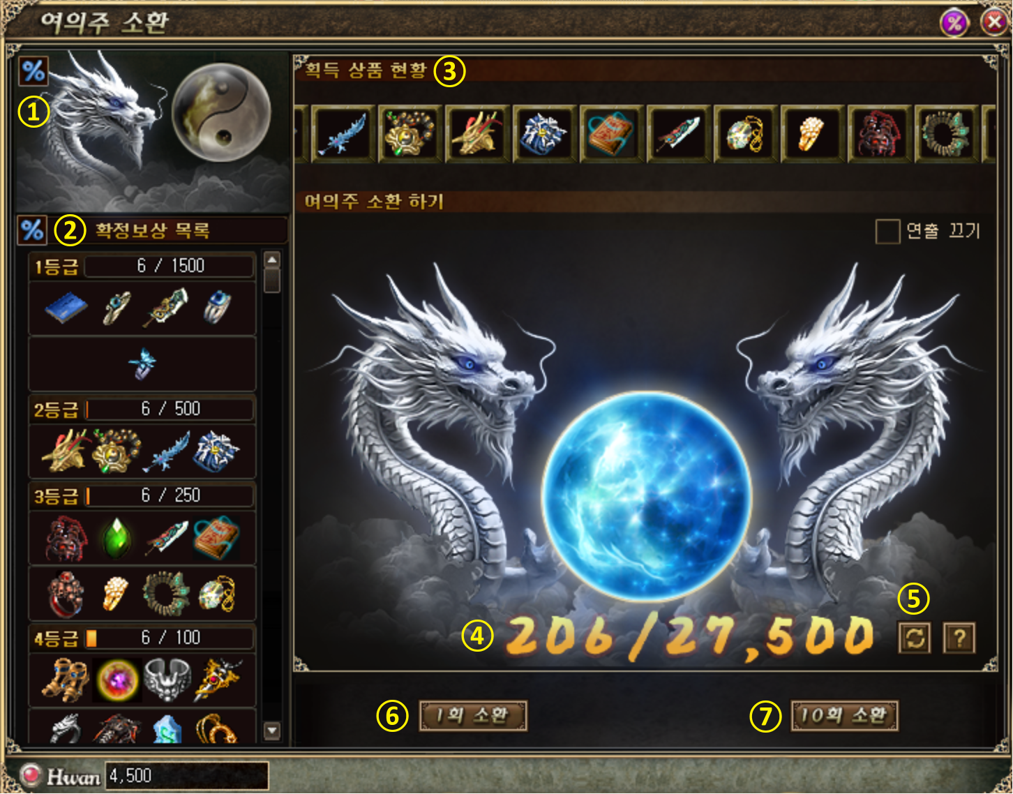| 10 | (幻影)成长之妙药 ×1(经验 5,600,000) (환영)성장의묘약 ×1 |